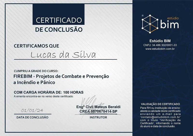 A Assinatura FireBIM / Prime BIM é um curso livre profissionalizante e como tal não há vinculação ao MEC.